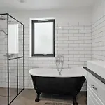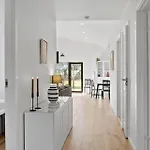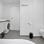 La villa M347-Vaeggerlose-Folvavej-18 dispone de un cuarto de baño con una bañera de hidromasaje, una ducha y una lavadora. Hay una secadora para la comodidad de los huéspedes.